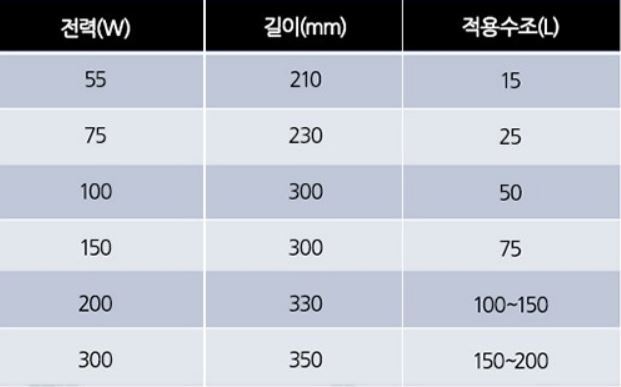 많은 종류와 알기어려운 100W 200W등의 규격별로 어떤크기의 어항에 적합한지 한번 알아보겠습니다.